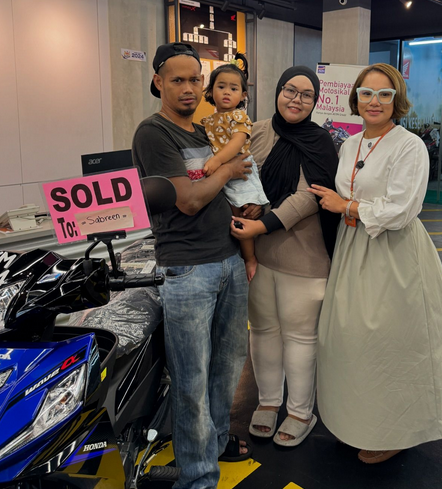 Kak Lina dengan ikhlasnya menghadiahkan pasangan ini sebuah motor baru untuk kegunaan mereka. Memikirkan anak pasangan ini yang bernama Nuha, motor ini adalah sebagai hadiah hari lahir Nuha yang jatuh pada tarikh 25 November yang lepas.