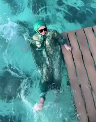 Pada awal video, Che Ta menggunakan tangga kayu untuk turun ke laut dan Che Ta terus menunjukkan skill berenangnya. Ketika berada di dalam air, kedengaran Che Ta memanggil suaminya, Zain untuk membantunya berenang. Perkongsian ini telah mengundang tawa warganet.