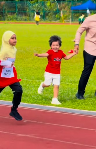 Moment yang dirakamkan ketika Aafiyah berlari sangat menarik sekali kerana Afwa dilihat begitu teruja memberi sokongan terhadap kakaknya. Afwa turut sama-sama berlari di tepi trek larian bersama bodyguard Dato’ Siti sebagai tanda memberi semangat kepada Aafiyah.