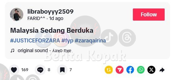” Semoga arwah dpt keadilan ramai doakan awak Zara syg anak syurga Amin.. rakyat malaysia bersama kamu dik. rakyat membela nasib rakyat.. “