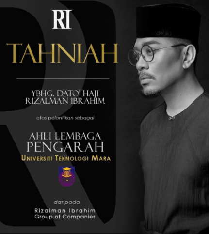 Terbaru, satu video Instagram yang dimuatnaik oleh Dato’ Rizalman sendiri sebagai perkongsian bahawa Dato’ Rizalman kini telah dilantik menjadi Ahli Lembaga Pengarah Universiti Teknologi MARA. Wah, tahniah Dato’ Rizalman di atas kelayakan dan anugerah yang diterima.