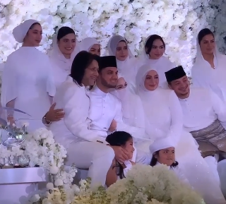 Kelihatan ibu Neelofa, Datin Noor Kartini bersalaman dan memel0k lama anak dan menantu barunya itu. Mungkin ada sesuatu pesanan dititipkan buat pasangan pengantin ini untuk melayari kehidupan rumahtangga selepas ini.