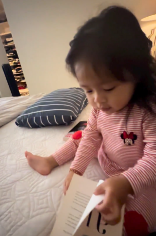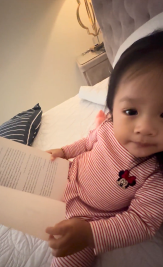 Meninjau entry di akaun Instagram Duriankimchi Junior, telah dikongsikan satu video yang memaparkan Rina sedang membaca buku bersama Maryam. Rina memegang sebuah buku berjudul Tony Fernandes dan membelek helaian buku tersebut.