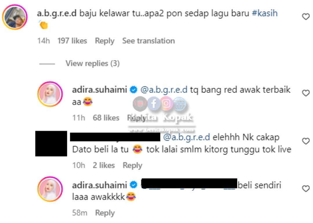 Selain itu, ada juga berseloroh mengatakan yang baju kelawar ini akan menjadi viral seperti cincin yang dipakai oleh Adira sebelum ini yang turut tular di media sosial. Di ruangan komen, kelihatan Dato’ Red turut memberikan komen di posting bekas isterinya.
