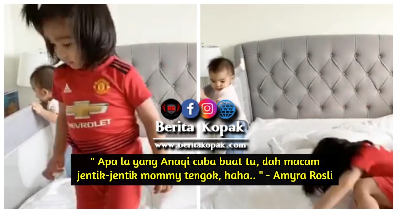 Dalam video tanpa suara ini, Anaqi menunjukkan berbagai-bagai gelagat yang mencuit hati. Aktif bergerak ke sana sini sehinggakan akh1rnya Anaqi tergolek juga jat0h katil. Kapsyen Amyra sendiri melucukan apabila menulis melihat Anaqi seperti jentik-jentik.