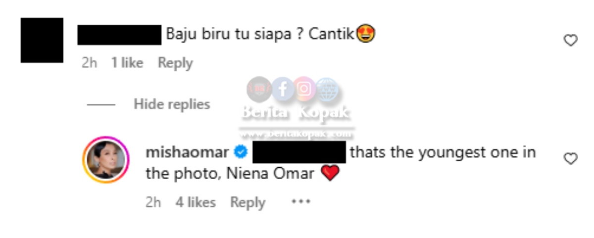Komen balas daripada Misha kepada yang bertanya gerangan seorang lagi wanita dalam gambar yang dikongsikan :