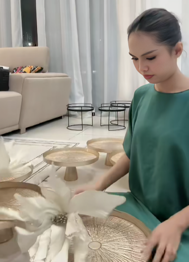 Menerusi video pertama, kelihatan Bella berada di kediamannya sendiri sambil memulakan proses gubahan hantaran dengan penuh teliti. Setiap langkah dilakukan dengan cermat, sekali gus menunjukkan kesungguhan Bella dalam memastikan hasil gubahan itu nampak kemas dan indah. Suasana begitu santai, namun fokus jelas terpancar sepanjang proses tersebut.