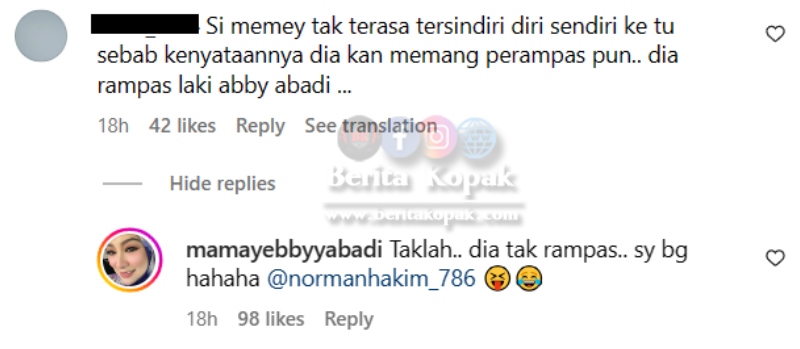 Ada juga komen yang mengungkit tentang kisah lama mereka dan ini jawapan Abby :
