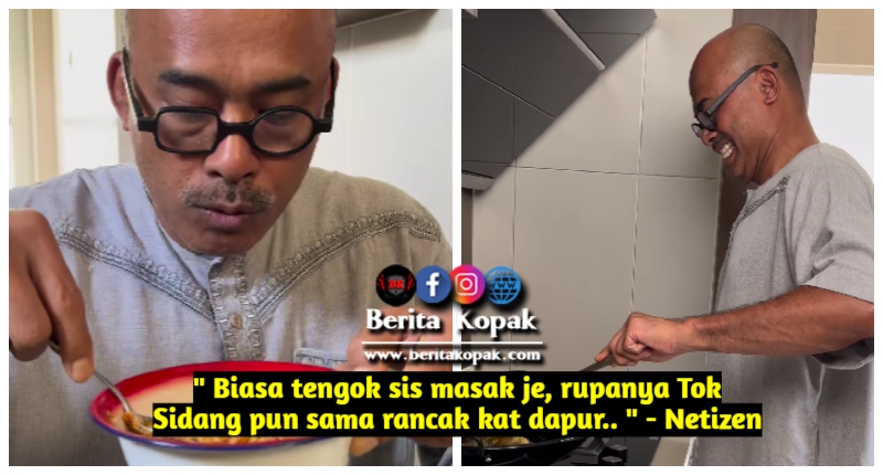 ” Biasa tengok sis masak je, rupanya Tok Sidang pun sama rancak kat dapur.. ” – Netizen