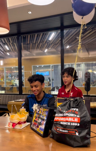 Ungkap Rita di ruangan kapsyennya ucapan terima kasih untuk kelab peminat yang selalu mengingati birthday anak-anaknya. Dapat dilihat mereka menyediakan kek dan juga hadiah buat Rayyan. Rita juga menunjukkan Rayyan membaca kad ucapan daripada kelab peminat ini.