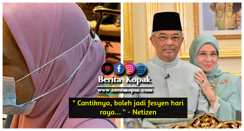 Wah, kreatif sungguh Tuanku Permaisuri kita. Nampak cantik dan memudahkan lagi pemakaian mask bagi wanita bertudung. Betul apa yang dikatakan netizen ia boleh dijadikan fesyen di hari raya tahun 2020. Lepas ni mesti ramai yang akan memakai sebegini.