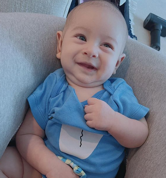Gambar Terbaru Anak Emma Maembong, Shariq Arshan Gabriel Yang Kini Sudah Berusia 4 Bulan Lebih. Wah Pejam Celik, Pejam Celik, Sekejap Je Dah Panjang. Gambar Yang Last Tu Comel Sangat Shariq Senyum Senget !!