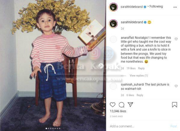 Hasil tinjauan terbaru di akaun Instagram Sarah yang kini sudah di private, Sarah telah memuatnaik beberapa gambarnya ketika zaman kanak-kanak berserta gambar-gambar lama ahli keluarganya. Perkongsian Sarah itu meraih perhatian ramai dan memperolehi banyak tanda suka.