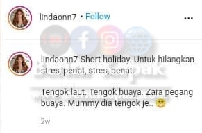Menurut Linda, ia merupakan percutian pendek untuk melepaskan tek4nan setelah penat bekerja. Linda sememangnya jarang berkongsi gambar anaknya di media sosial. Jadi apabila sekali ia dikongsikan, pastinya ramai terkej0t melihat Zara sudah pun besar