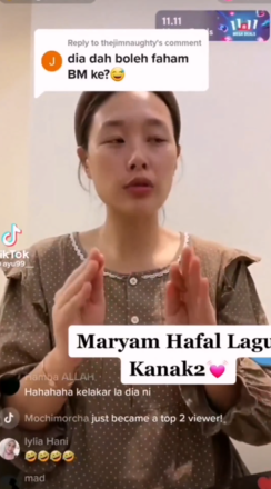 Video Maryam You Narae Menyanyi Lagi Kanak-Kanak Buat Ramai Terhibur. Bersungguh Betul Maryam Menyanyi Dengan Gaya-Gaya Sekali. Part Yang Ulang Sebut ‘ Papaku, Papaku, Papaku ‘ Dan Masa Bunyi ‘ Pon, Pon, Pon ‘ Tu Paling Kelakar. Bukan Main Semangat Lagi Tekan Hon, Haha !!