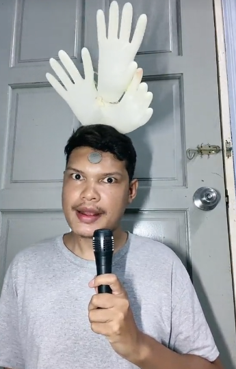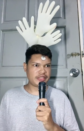 Lelaki ini hanya menggunakan sarung tangan getah dan juga sekeping duit syiling untuk meniru gaya pemakaian Aisha ketika AJL 38 tersebut. Wah, kreatif sangat sampai boleh terfikir dengan hanya menggunakan benda yang paling mudah.