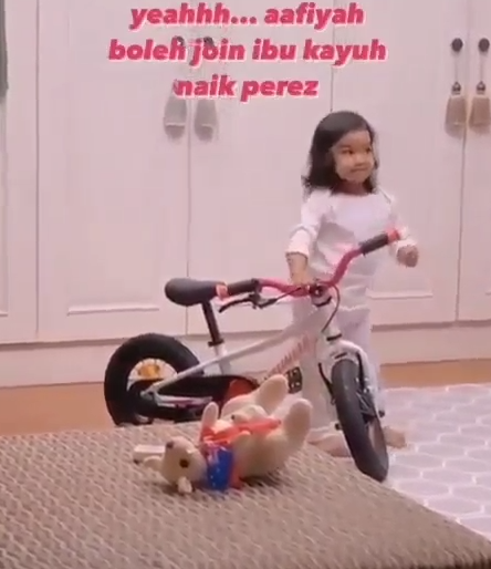Hasil tinjauan di akaun Instagram Aafiyahkhalid telah berkongsi satu video yang memaparkan gelag4t Aafiyah setelah mendapat hadiah sebuah basikal. Memang terhibur melihat aksinya yang begitu teruja setelah mendapat hadiah tersebut. Amboi sampai joget-joget Aafiyah, comel sangat.