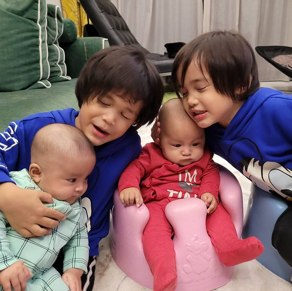 Menerusi akaun Instagram Dr Sheikh berkongsi gambar terbaru anak kembarnya, Sheikh Eusoff dan Sophea Emilia yang kini sudah berusia empat bulan. Kini Eusoff dan Emilia nampak semakin bamb4m dan comel.