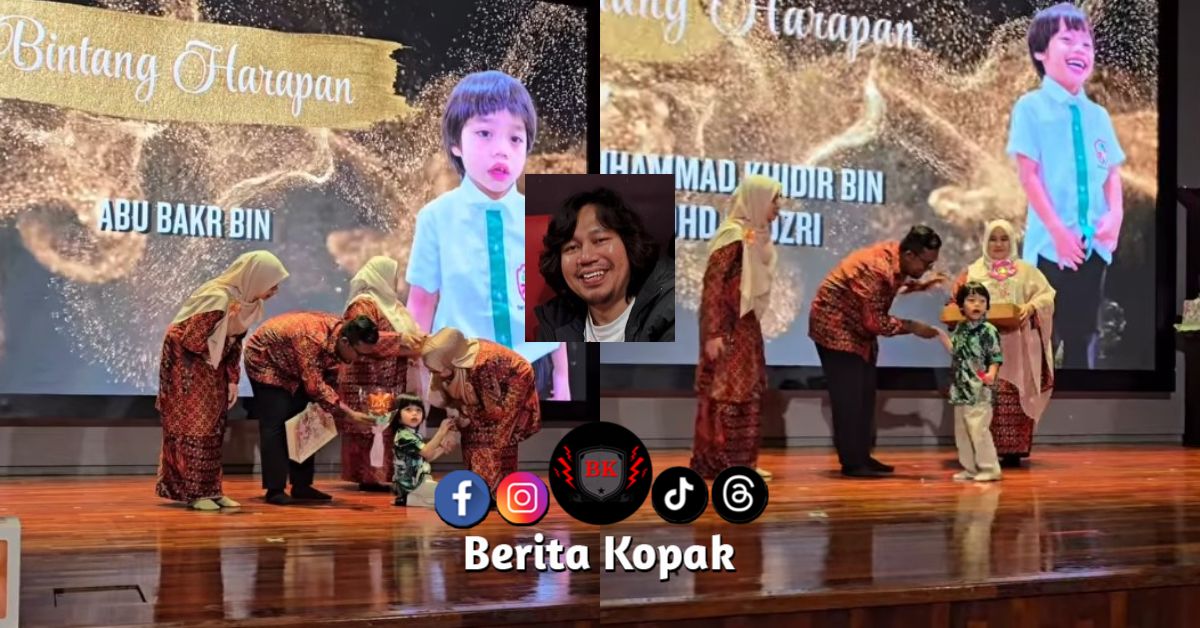 Video anak-anak Jep Sepahtu, Abu Bakr dan Muhammad Khidir menerima anugerah di sekolahnya raih perhatian ramai. Alahai, comel gelagat masing-masing masa naik pentas. Nampak manja sangat..