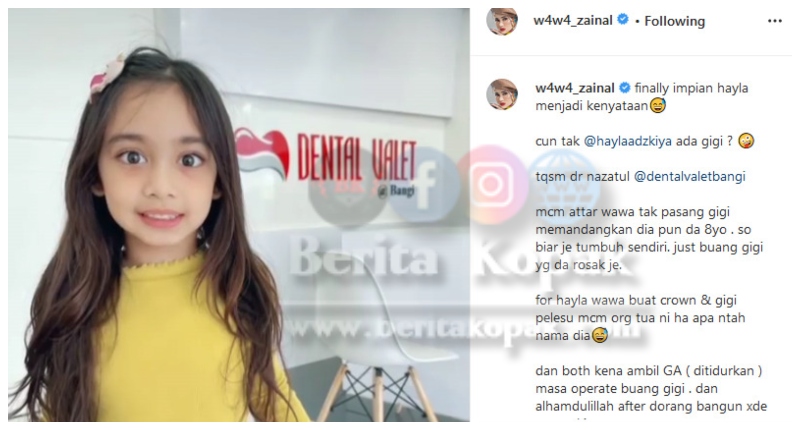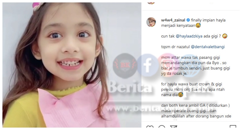 Penampilan Terkini Anak Perempuan Wawa Zainal, Hayla Setelah Mendapat ‘Gigi Baru’. Wah, Makin Manis Senyuman Hayla. Boleh Senyum Nampak Gigi Lah Lepas Ni. Comel !!