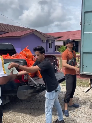 Fattah membantu petugas mengagihkan bantuan asas yang telah pun dibungkus kepada penduduk kampung. Selain bantuan makanan, Fattah turut memberikan sumbangan wang ringgit kepada keluarga mangsa banjir. Alhamdulillah Allah menghadirkan Fattah sebagai pengantara dan berkongsi rezeki untuk mereka selepas dilanda musibah.