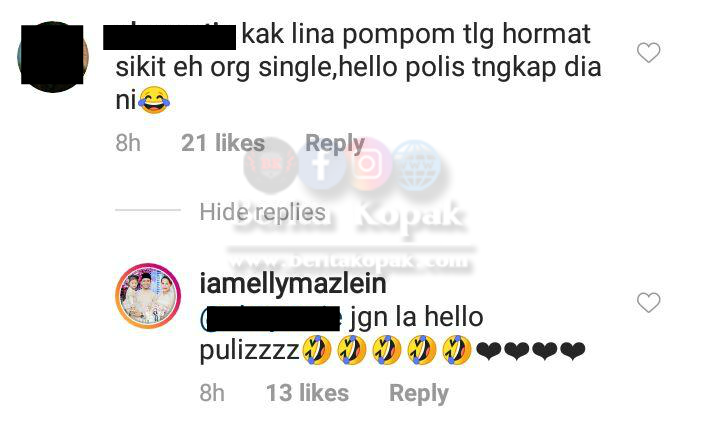 Namun beberapa komen netizen mendapat respon daripada Elly yang menghiburkan :