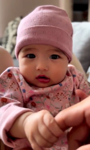 Pada paparan video itu, tertulis Bunga ikut muka mummy ditandakan dengan emoji pangkah dan bunga mengikut muka nanna dengan tanda right. Memang si kecil ini ada iras dengan Nanna dan daddynya juga.