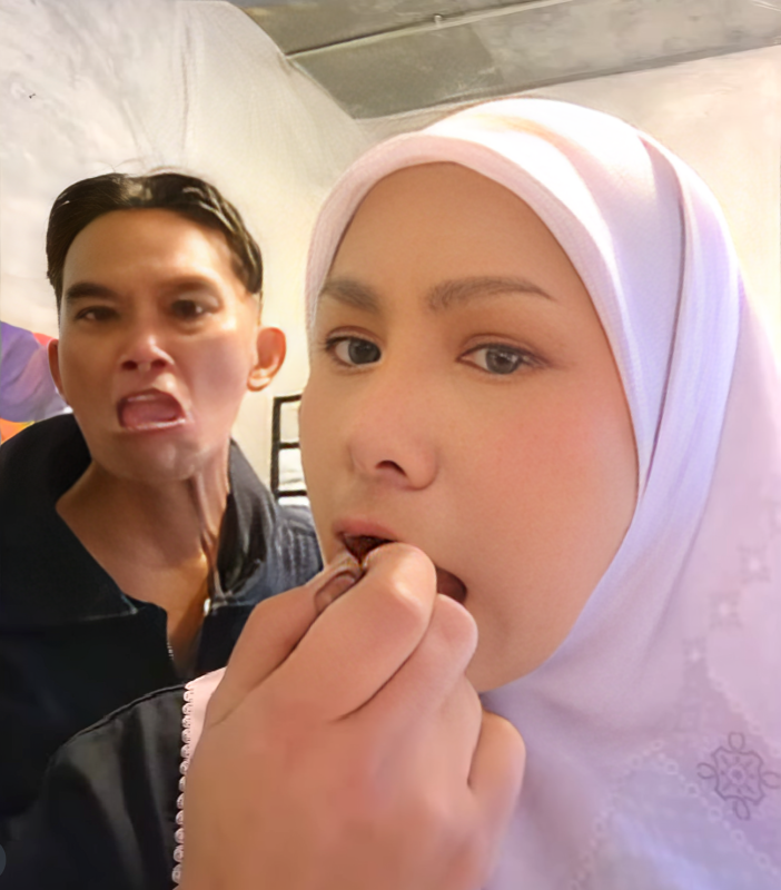 Siapa sangka, selepas itu Elly bertindak spontan dengan menconteng wajah Azhan menggunakan gincu berkenaan. Wajah Azhan yang kelihatan pasrah dengan apa yang berlaku mencuit hati ramai. Dua individu yang turut berada di situ tidak dapat menahan tawa melihat gelagat mereka berdua.