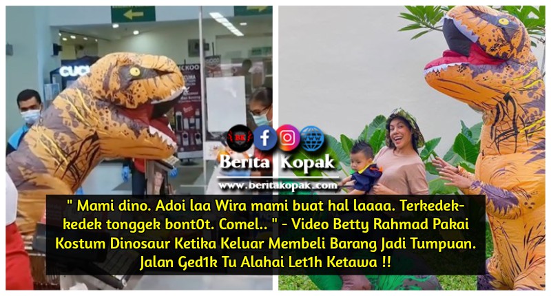 Video Betty Rahmad Pakai Kostum Dinosaur Ketika Keluar Membeli Barang Jadi Tumpuan. Jalan Ged1k Tu Alahai Let1h Ketawa !!