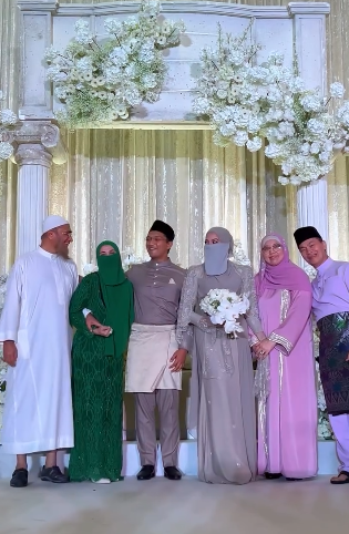 Ibu Dr Amir juga turut mengenakan niqab di majlis ini. Kelibat Haris dan Neelofa juga turut kelihatan memasuki ke dewan. Majlis yang islamik sebegini memang menjadi idaman ramai. Dekorasi pelamin yang dihiasi dengan bunga-bungaan berwarna putih juga menambahkan lagi seri.