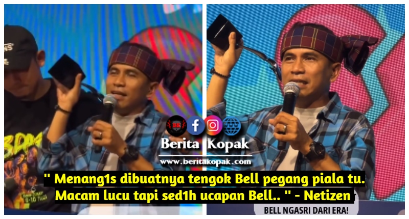 ” Menangis dibuatnya tengok Bell pegang piala tu. Macam lucu tapi sedih ucapan Bell.. ” – Netizen