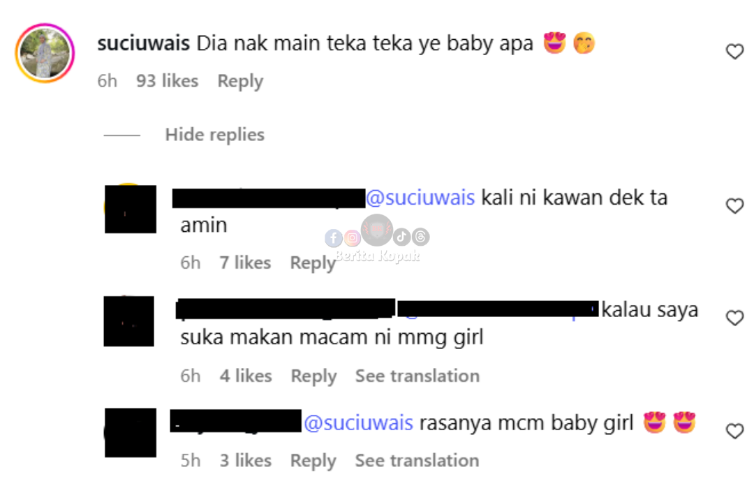 ” Happy for you mummy.. Makan la mummy smoga yg baik2 shj utk u n baby.. Tahniah mummy n take care.. “