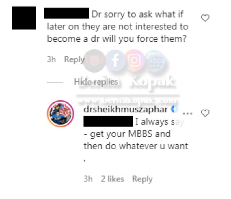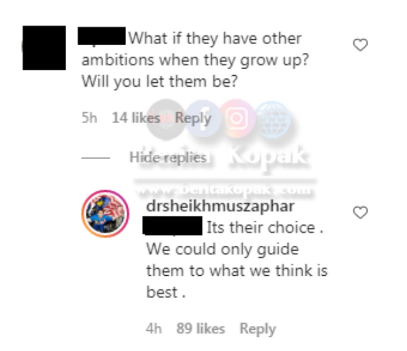 Namun ada juga pertanyaan daripada netizen yang bertanya sekiranya anak-anaknya ini tidak berminat untuk menjadi doktor apabila besar nanti. Jawapan Dr Sheikh meler4ikan persoalan netizen ini.