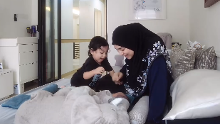 Walaupun usianya baru setahun lebih, Urhan sudah pandai mengekspresikan rasa sayangnya kepada si adik. Wajah teruja Urhan juga tidak dapat disorok. Gembira sungguh Urhan ada kawan untuk bermain selepas ini. Tentu Urhan akan menjadi abang yang baik dan pelindung kepada adiknya.