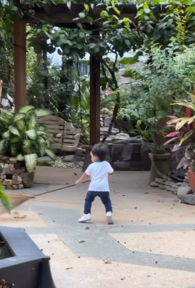 DS Siti yang merakamkan aksi Afwa dari jauh ini tertawa sahaja bersama Aafiyah melihat kelakuan Afwa. Kata DS Siti, Afwa ini memang seorang budak yang rajin. Sampaikan barang mainan yang lalu di hadapannya pun kena tend4ng kerana mengganggu Afwa sedang menyapu. Lawak lah Afwa ni.