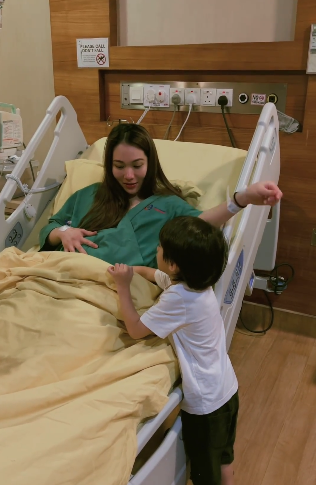 Karl yang berwajah comel ini kelihatan begitu teruja untuk bertemu adiknya. Dapat dilihat Karl memegang perut Elvina dan daddynya, Datuk Haniff Borhan memberitahu perut mommynya sudah kempis dan baby sudah tiada di dalam perut. Karl diminta memejamkan mata dan baby Ean dibawa ke katil.