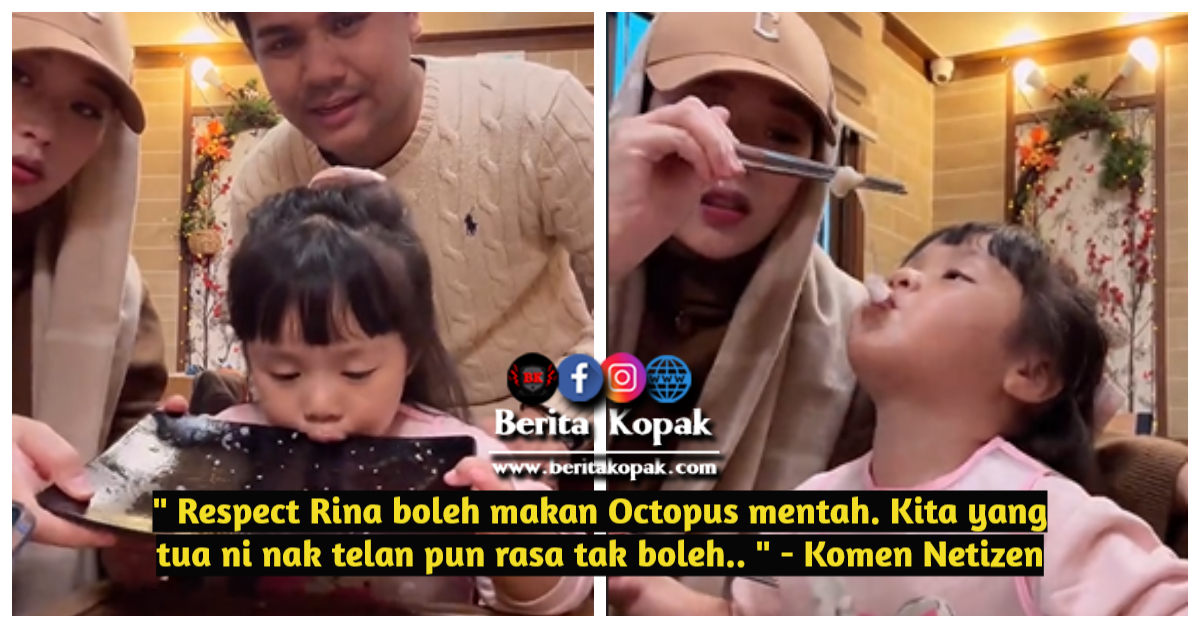 Alahai pandai sungguh Rina makan optopus tu. Selain tu, warganet juga kagum mendengar kepetahan Rina bertutur dalam tiga bahasa iaitu Melayu, English dan Korea. Semoga Rina terus membesar dengan sihat serta menjadi anak yang baik buat kedua ibu dan bapanya.