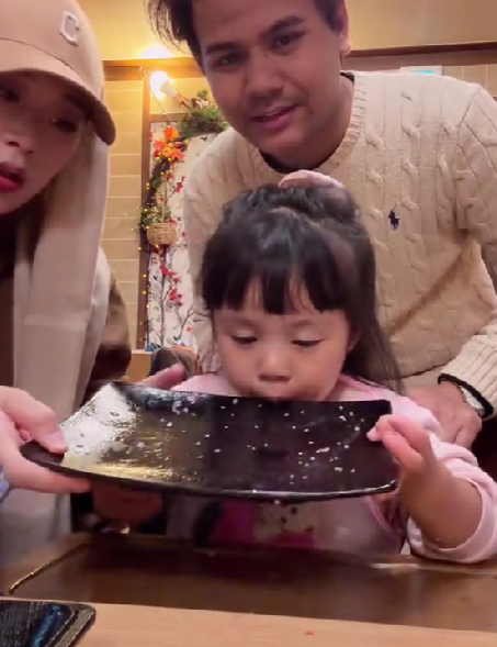 Selain itu, Maryam juga berkongsi video yang memaparkan gelagat Rina mencuba makan octopus menerusi akaun Tiktok miliknya. Telatah Rina yang langsung tidak memilih makanan dan berjaya menghabiskan satu pinggan octopus menarik perhatian warganet.