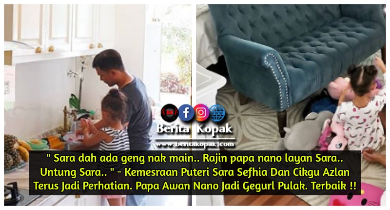 Bagus sungguh Papa Azlan melayan Sara main anak pat0ng. Bukan semua ayah boleh melayan anak perempuan bermain. Kena betul-betul penyabar maklumlah gegurl ni manja sikit. Apa pun, kami di Berita Kopak mendoakan selalu semoga kehidupan Sara sentiasa gembira bersama mama dan papa nya itu. Aamin