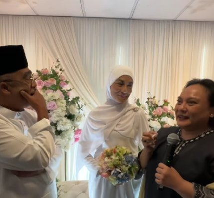 Salah satunya adalah kehadiran Datuk M. Nasir dan isterinya, Datin Marlia Musa juga menggamatkan suasana. Menerusi satu video, Datin Marlia berkongsi ucapan buat Sabri dan Angeline. Akui Datin Marlia, beliau telah berkawan rapat dengan kedua-dua pelakon ikonik dalam siri Pi Mai Pi Mai Tang Tu sudah selama 30 tahun.