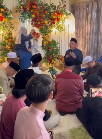 Pada awalnya, ayah pengantin perempuan kedengaran tenang sahaja memberikan ucapannya. Namun selepas itu, semua yang berada di situ sebak mendengar pesanan yang keluar dari mulutnya. Suara ayah pengantin juga bergetar dan air matanya mengalir sama.