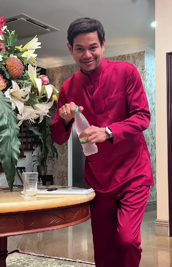 Que dilihat membantu mengambilkan air untuk Fazura dengan menuangkan air ke dalam gelas sebelum membawanya terus kepada aktres tersebut. Layanan itu membuatkan Fazura kelihatan sedikit malu-malu dan sempat menutup separuh wajahnya menggunakan selendang.