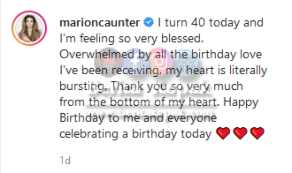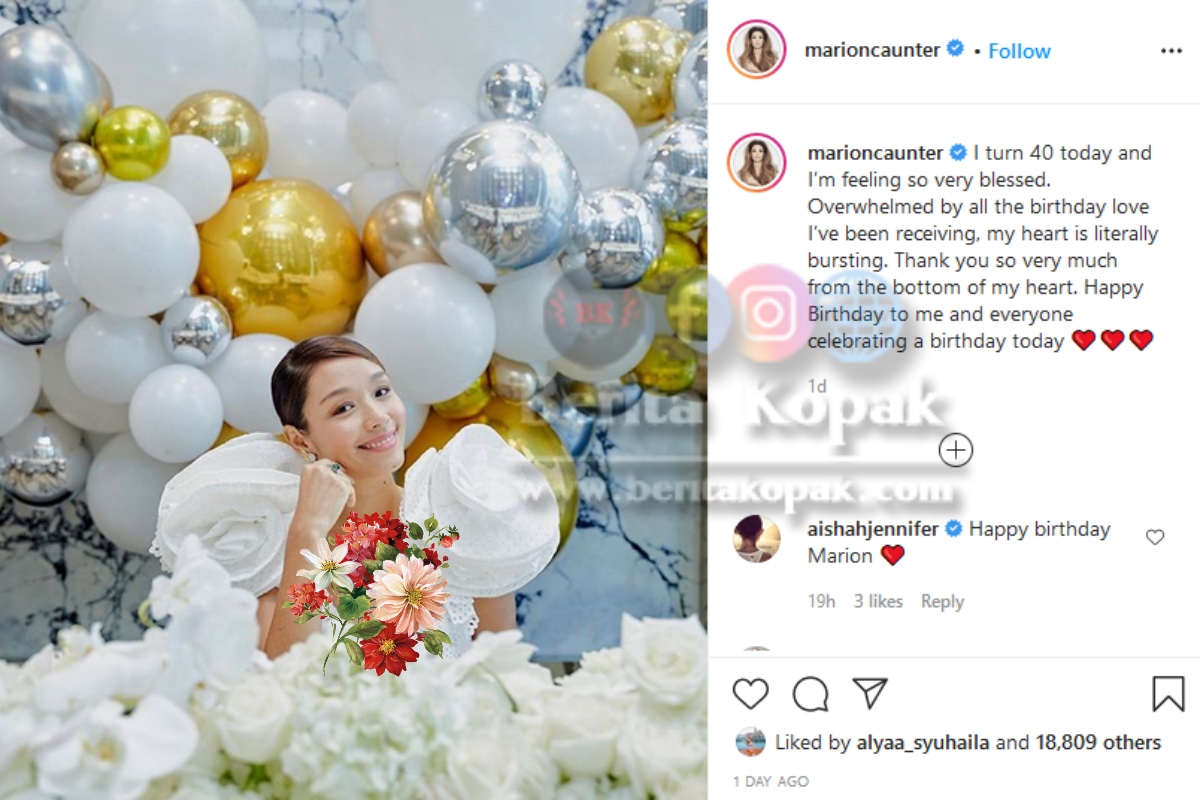 Wah, untunglah Marion kerana tetap nampak muda remaja walaupun sudah berusia 40 tahun. Kami di Berita Kopak turut mengucapkan selamat hari lahir kepada Marion Caunter. Semoga dipanjangkan umur, dimurahkan rezeki dan kekal cantik selalu.