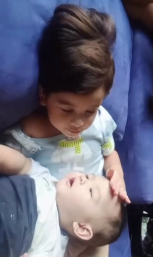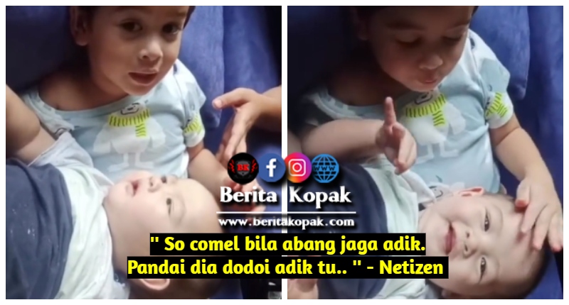 ” So comel bila abang jaga adik. Pandai dia dodoi adik tu.. ” – Netizen