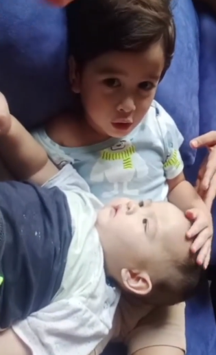 Meninjau akaun Instagram Shariq Gabriel, telah dikongsikan satu video yang memaparkan gelagat Arshan ketika menjaga Aryan. Dapat dilihat Arshan sedang bersandar di atas sofa dan Aryan diletakkan berbaring di atas badan abangnya itu.