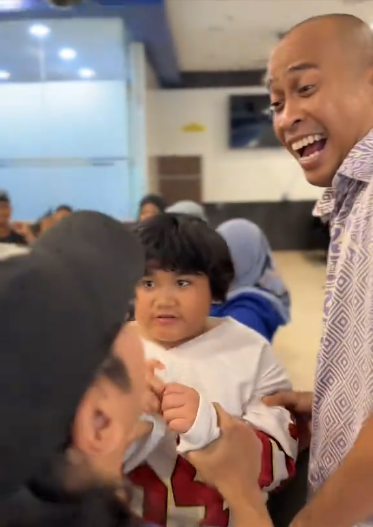 ” Budak-budak dia rasa selesa dengan seseorang tue… tue yang dia memang suka kalau bergurau gaduh semua tue.. Orang tua2 ckp, jangan benci2 org, nanti jadi sayang haha.. “
