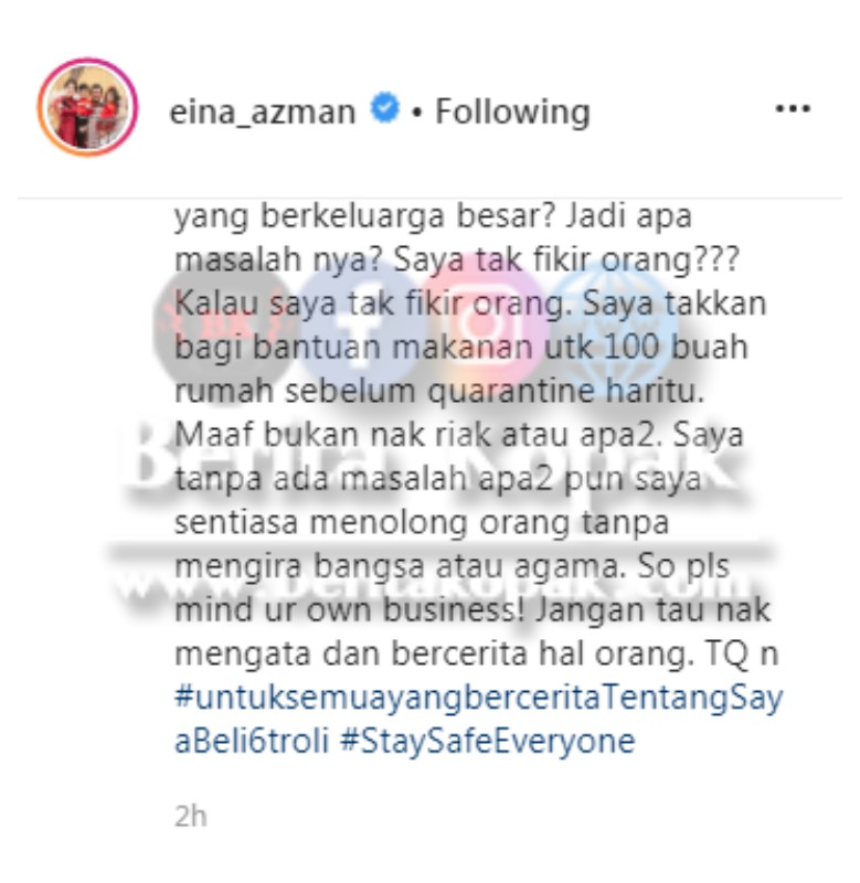 ” Sampai 6 troli penuh semua dalam tu.. Kesi4n tak pikir orang lain.. ” – Respon Datin Eina Azman Dikatakan Membeli Borong Dan Mementingkan Diri Sendiri. Power Sungguh, Terkedu Beb !!