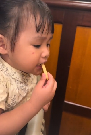Walaupun merajuk, tangan Khawla laju je mengambil fries di atas meja dan memasukkannya ke dalam mulut. Ish ish, satu lagi perangai Ibu yang Khawla tiru. Asal merajuk je mesti nak makan. Lawak lah Khawla, geram pula warganet melihat telatah Khawla itu.