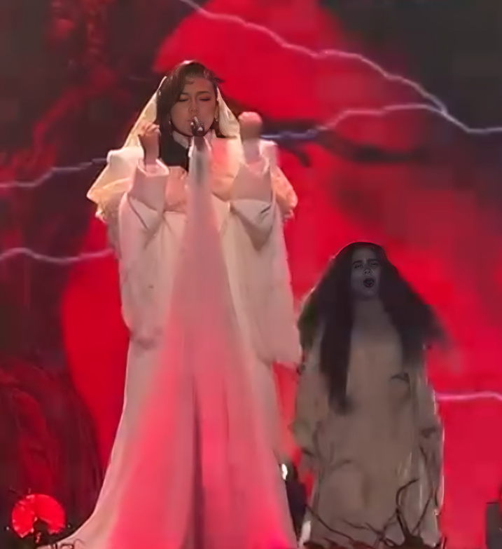 Kejutan diberikan apabila adik kepada Sharifah Shahirah iaitu Sharifah Sakinah tampil di pentas pada penghujung video. Sakinah yang memakai custome pontianak serba putih turut menyolek wajahnya sama seperti watak drama lakonannya sebagai Edna. Gamat pentas apabila Sakinah membuka suara.