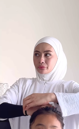 ” Hahahaha mmg sebijik sanggup Tu tarik ank sambil pegang rambut semata NK ambik getah,, padahal buleh jerr Lepaskan dlu pastu ikat semula adehhhh.. “